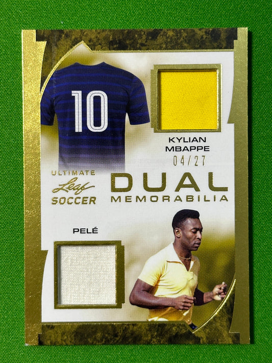 Kylian Mbappe / Pele Dual Game-Used Memorabilia 04/27 - Leaf Ultimate Soccer 2022