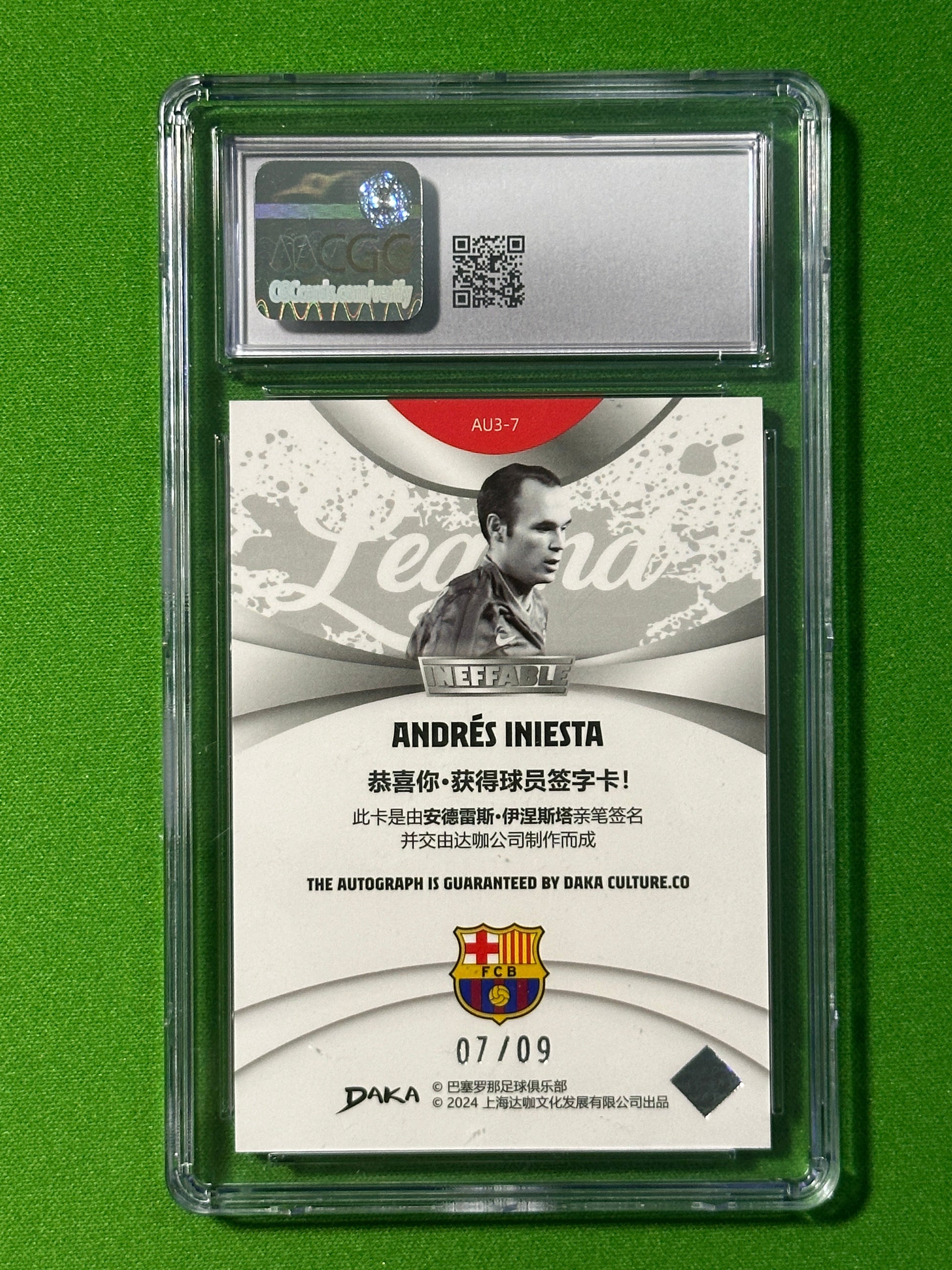 Andres Iniesta On-Card Autograph 07/09 - DAKA Barcelona One & Two 2023-24 - CGC 8